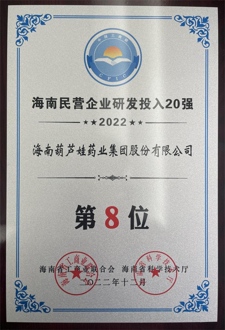 12月23日,2022海南民营企业50强和研发投入20强发布会在海口举行。会上发布了“2022海南民营企业50强”“2022海南民营企业研发投入20强”榜单和分析报告。william威廉药业再次荣登两榜,在海南民营企业50强榜单中位列第25位,较去年上升8位,这也是公司连续三年登榜;在海南民营企业研发投入20强中位列第8位,较去年上升7位。